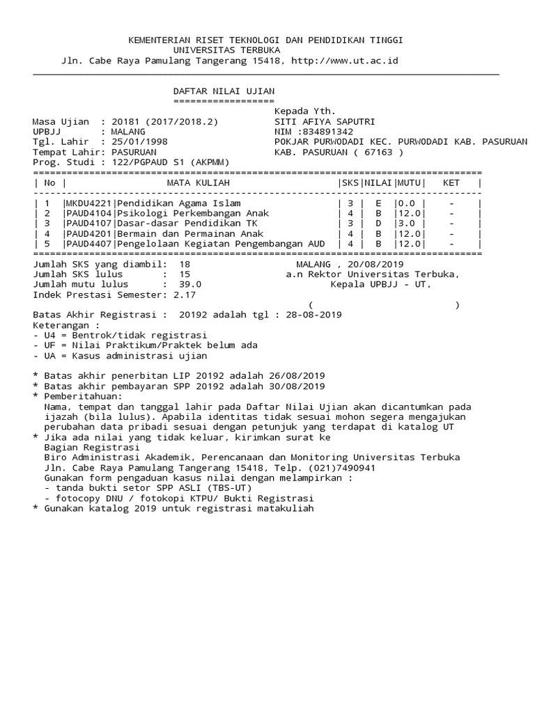 Daftar Nilai Ujian Ut / Leixluq4zvh8m / Check spelling or type a new query.. Maybe you would like to learn more about one of these? We did not find results for: Check spelling or type a new query.